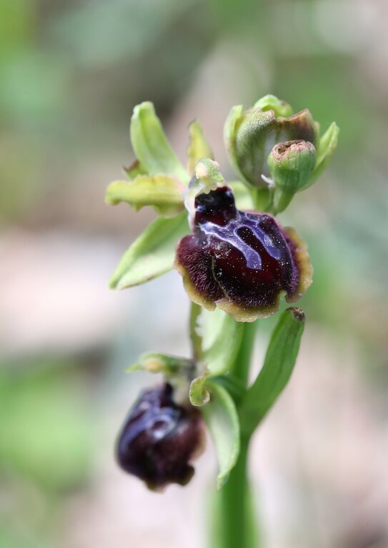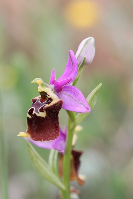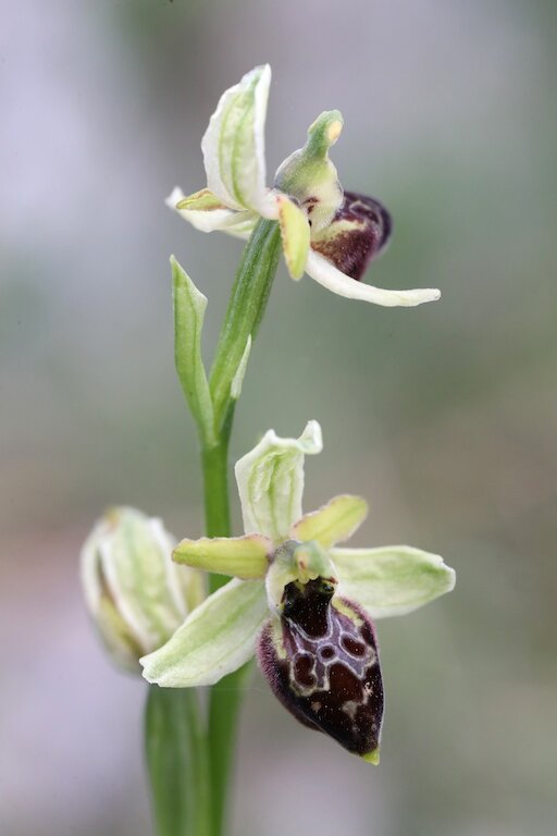 The orchards of the area harbour colonies of the spectacular Lady Orchid Orchis purpurea growing alongside Greater Honeywort Cerinthe major and Pink Garlic Allium trifoliatum. Amongst other orchid treasures we’ll be hoping to enjoy will be the Italian endemic Ophrys montis-gargani, sporting enormous protruberant horns.