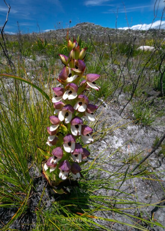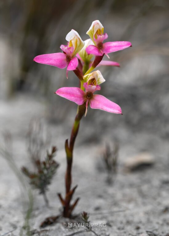 As midsummer hits in the Cape, the lowlands which fill with spring annuals dry up and it is the uplands' turn to shine. Most prominent among the special flora are the orchids, many flowering in meadows and seeps recovering from fires the previous season. They form a dazzling array of shapes and colours, each with its unique pollination system. Nearby, a whole suite of often overlooked summer flora blooms, from irids such as Gladiolus and Tritoniopis, to the more characteristic Proteas and Ericas of the Cape.