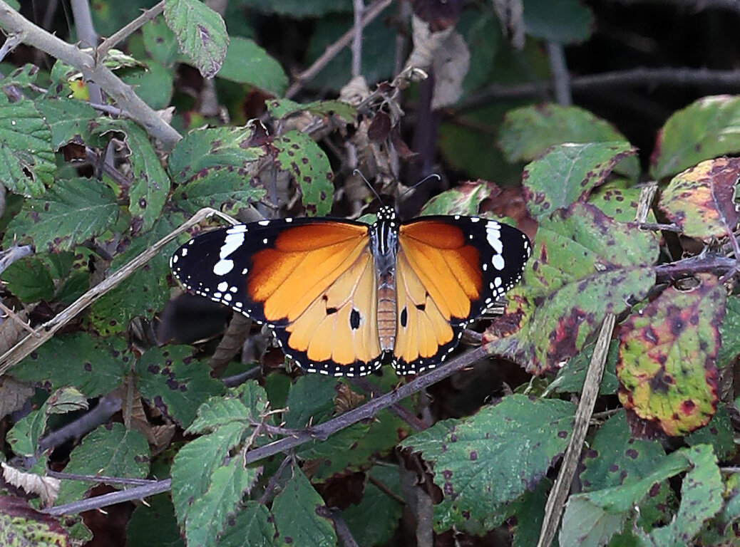 Close to the southern tip of Spain, a mere 9 miles from the Moroccan coast, there are established colonies of Monarch Danaus plexippus, and flying alongside (as well as in many other locations) will be Plain Tiger Danaus chrysippus, making for a unique visual spectacle in a European country.