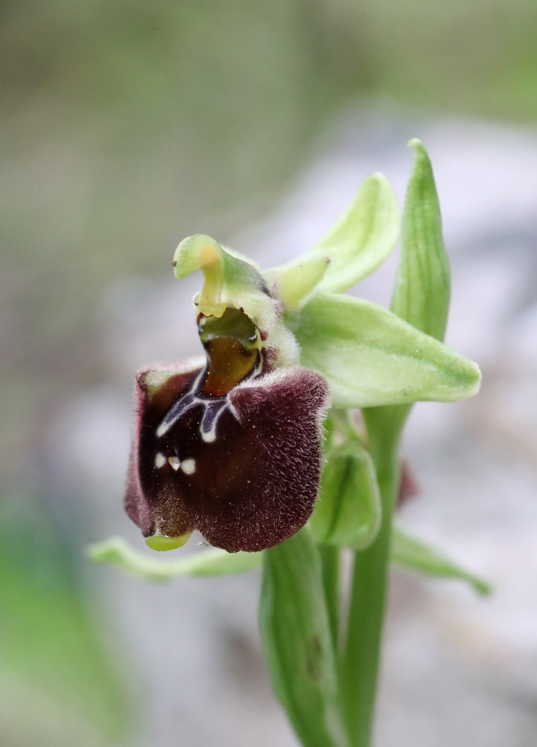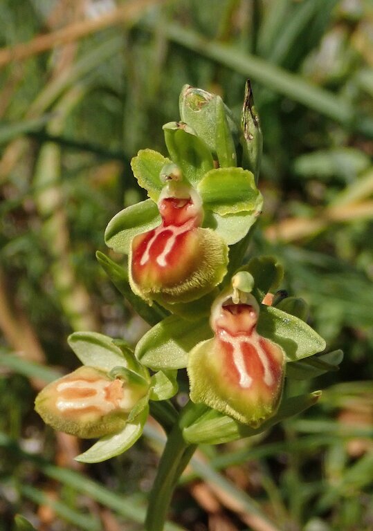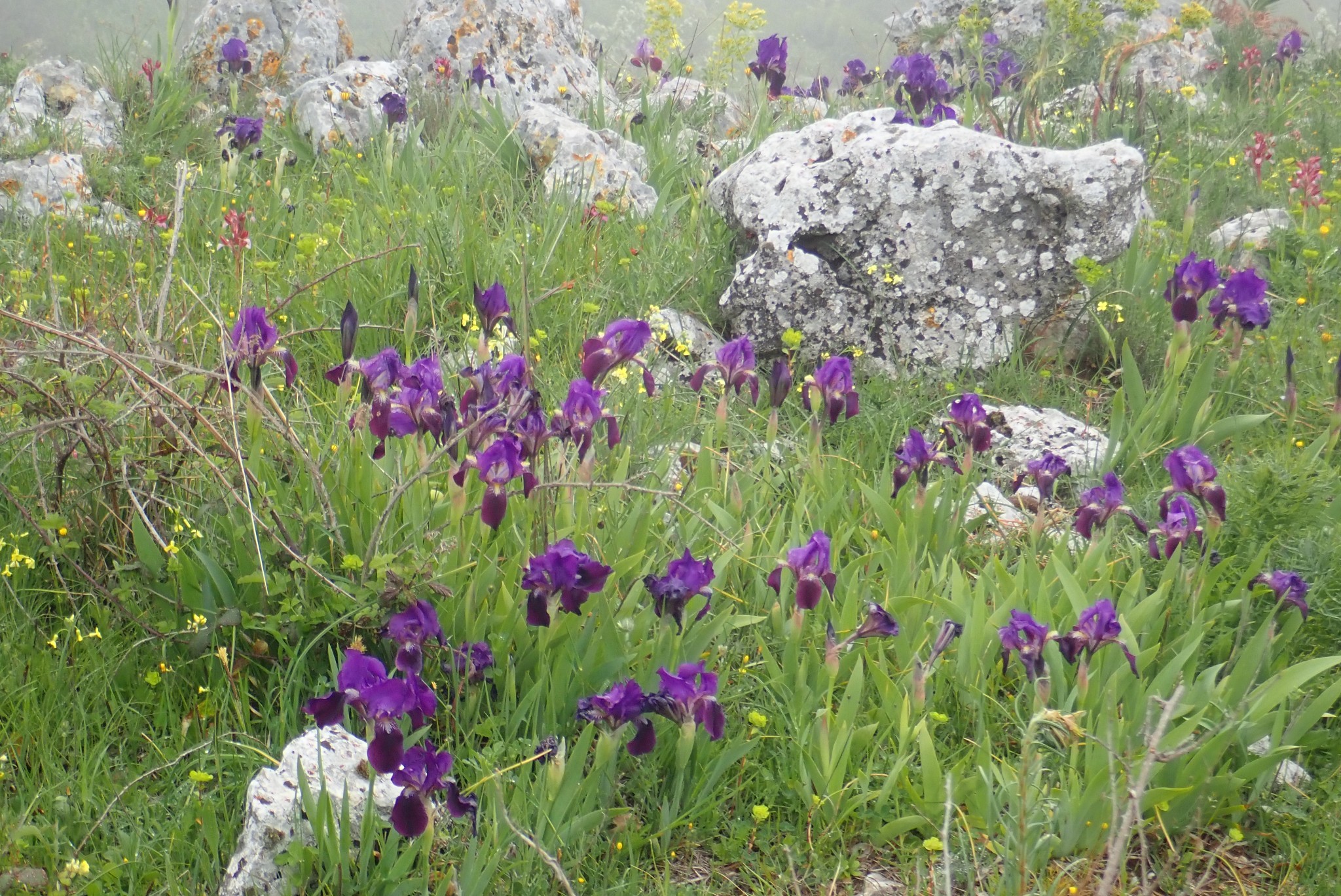 On the limestone pavement around Monte Sacro numerous orchids can be found such as Ophrys × flavicans, Sparse-flowered Orchid Orchis pauciflora, Four-spotted Orchid Orchis quadripunctata, and Bumblebee Orchid Ophrys bombyliflora.