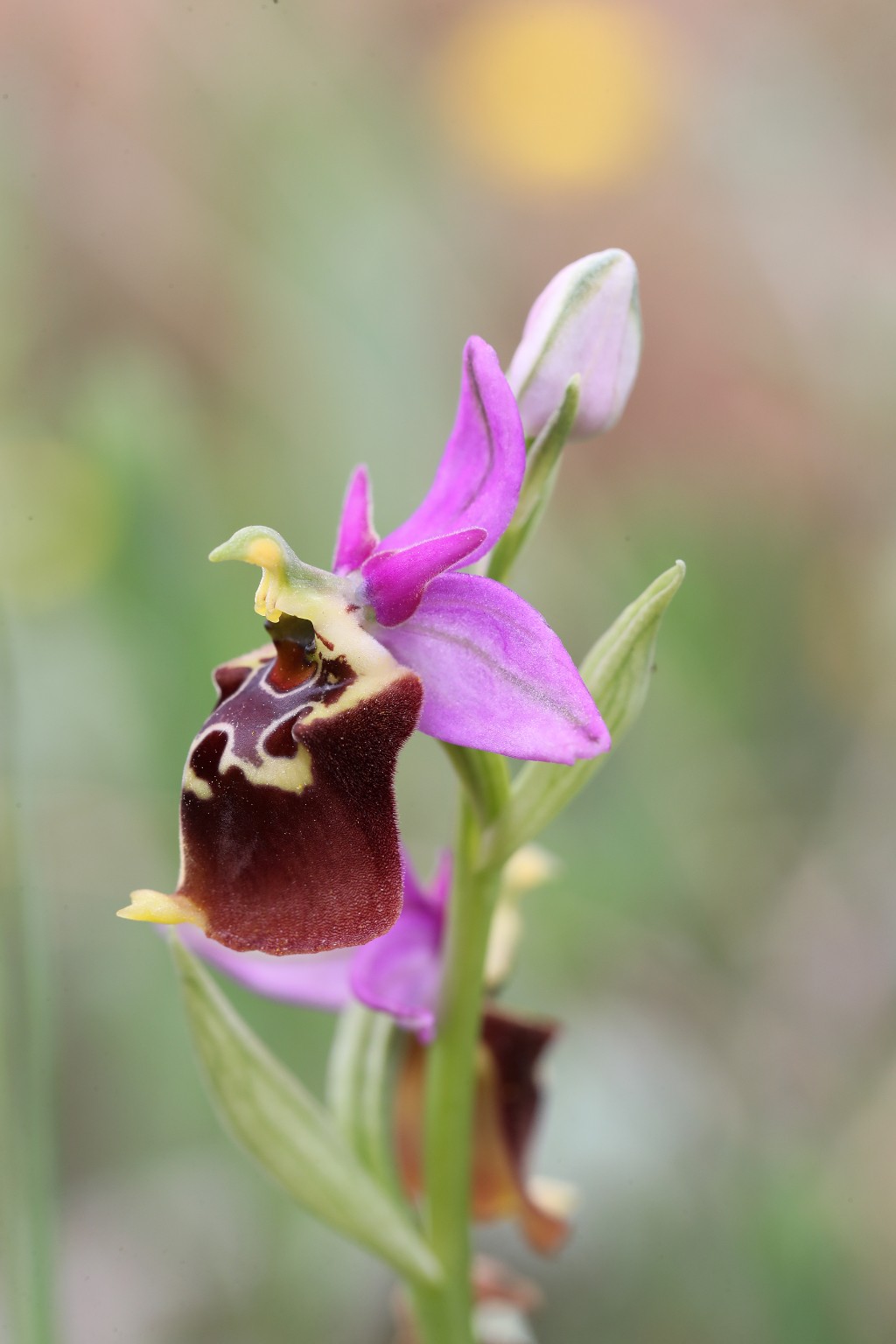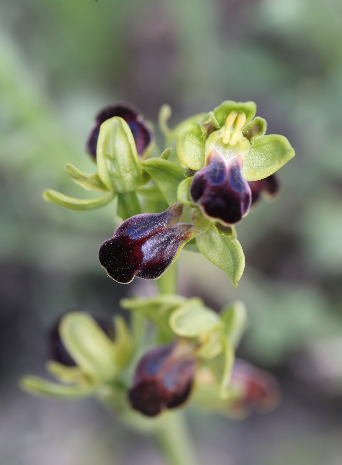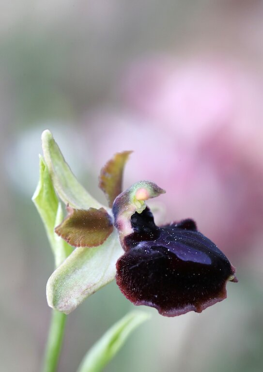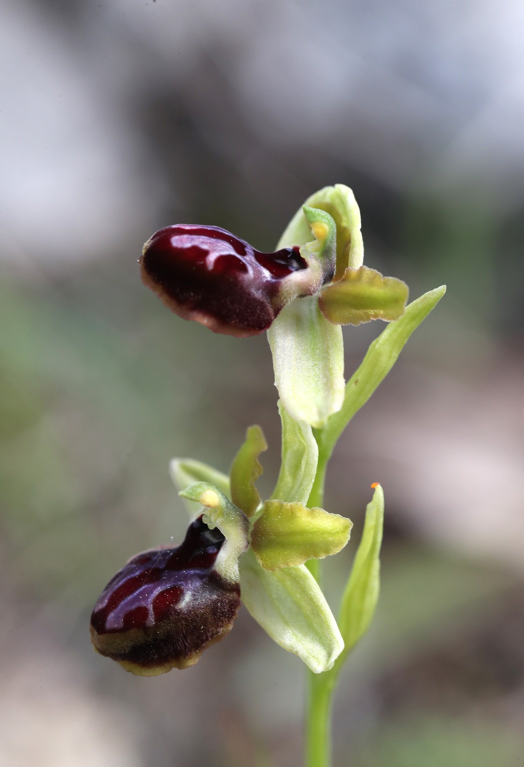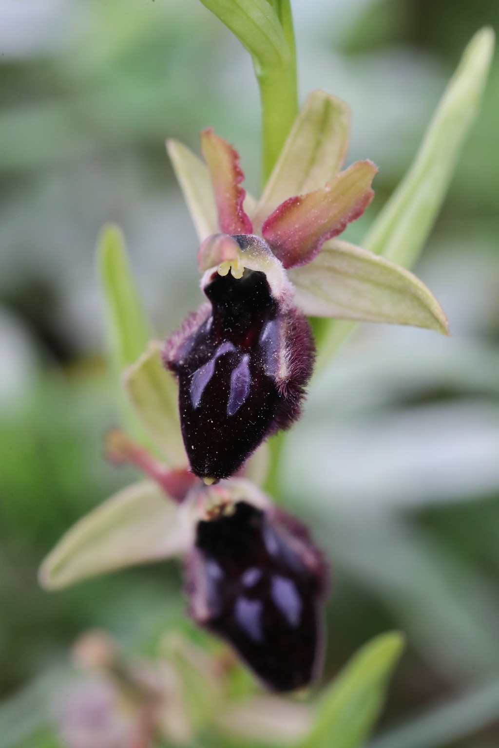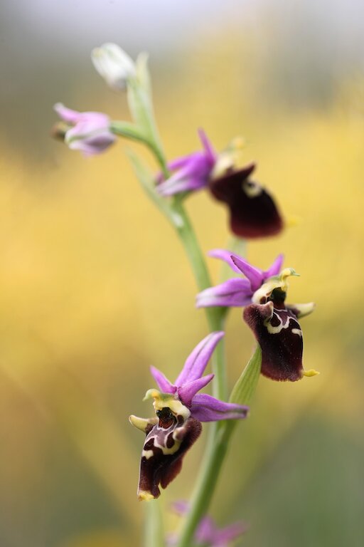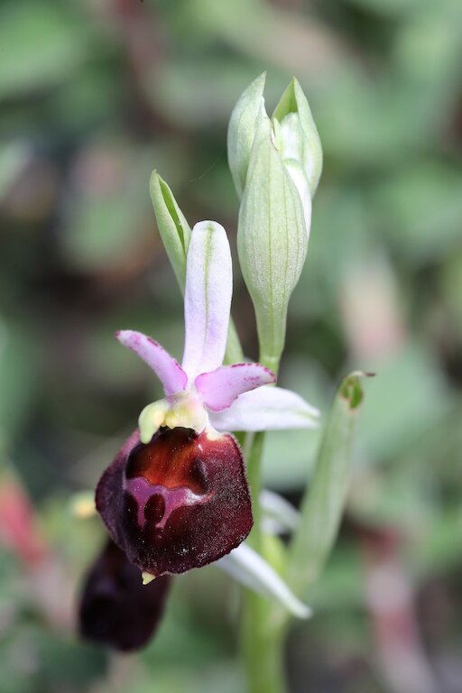 The orchards of the area harbour colonies of the spectacular Lady Orchid Orchis purpurea growing alongside Greater Honeywort Cerinthe major and Pink Garlic Allium trifoliatum. Amongst other orchid treasures we’ll be hoping to enjoy will be the Italian endemic Ophrys montis-gargani, sporting enormous protruberant horns.
