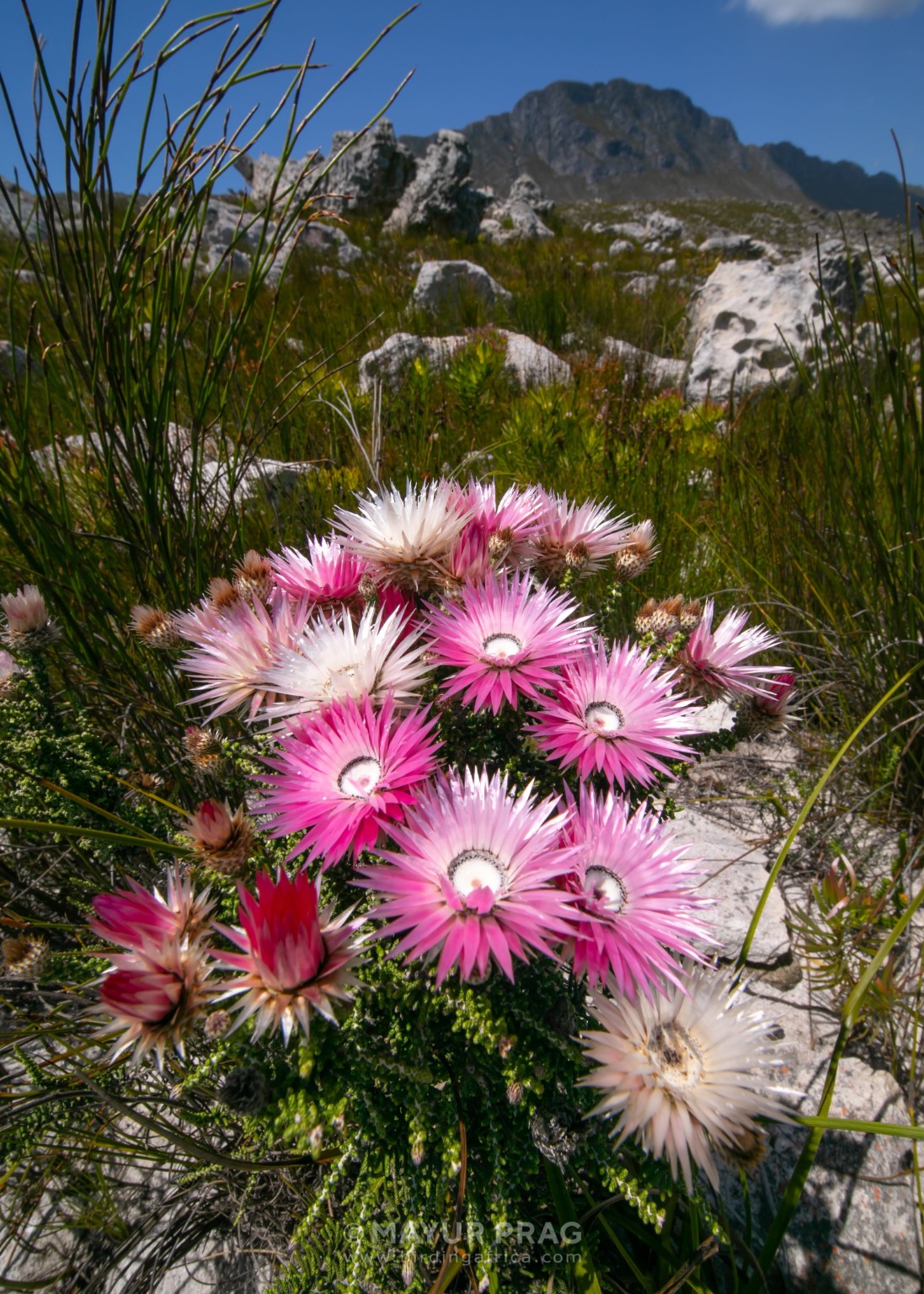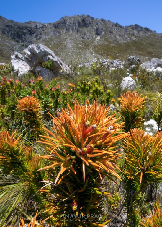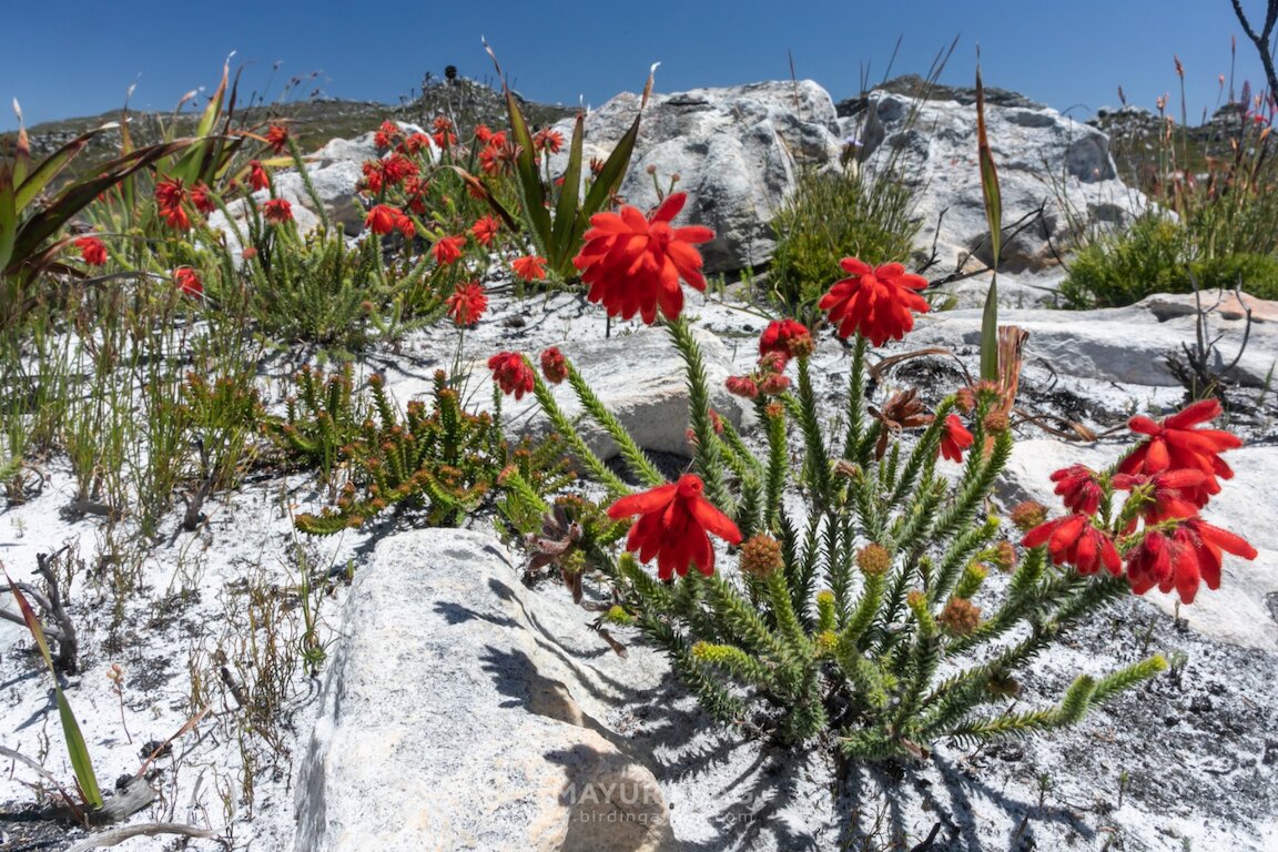 This tour will take us from the bustling hub of Cape Town, where we explore the Cape Peninsula, then eastwards to the Kogelberg Mountains, the centre of the Cape’s floral diversity. Further east still lies the lush Garden Route at the edge of the Cape Floral Kingdom, where dense forest meets the coastal dunes. We will travel inland to the border of the dry karoo, crossing over the majestic Swartberg Mountains where alpine gems await us, before making our way back to Table Mountain via the gorges of the Langeberg. At this time of year, most of the flora is in the mountains and you can expect lots of scenic walks in the hills!