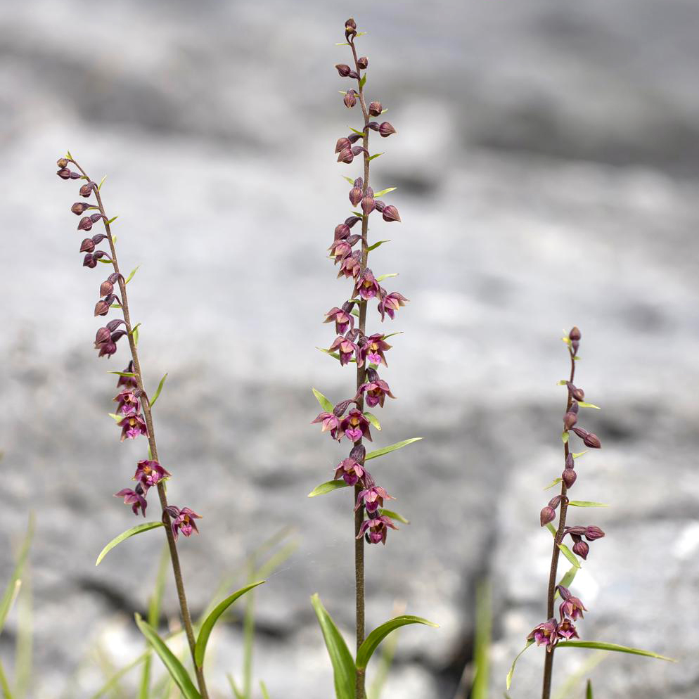 The limestone pavements of Hutton Roof offer a treasure trove of flora including, but not limited to, a magnificent hoard of helleborines. The predominant orchids of this special place are the Dark-red Helleborines Epipactis atrorubens championed by the late, great Bryan Yorke. They grow in enormous profusion here, and exhibit an unusual amount of variation.