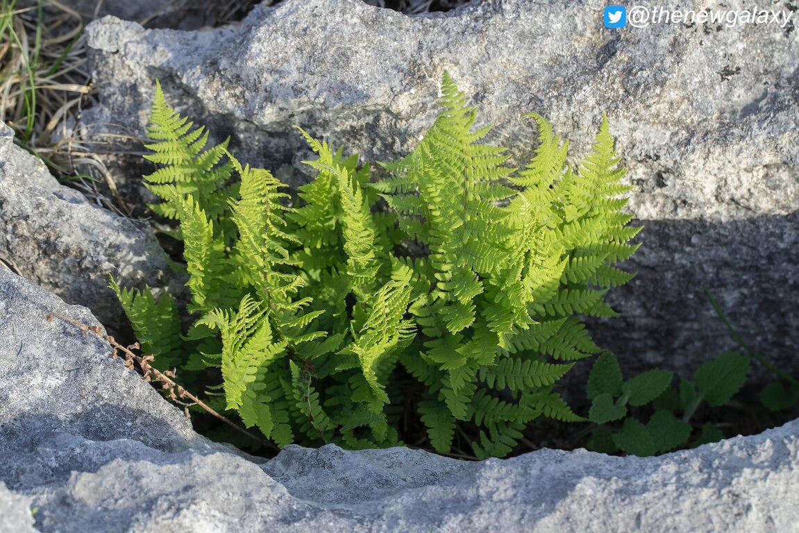 Our meandering walk around Hutton Roof will feature other rare botanical treasures, including elegant Angular Solomon's Seal Polygonatum odoratum, statuesque Rigid Buckler Fern Dryopteris submontana, and the regional endemic shrub Lancaster Whitebeam.