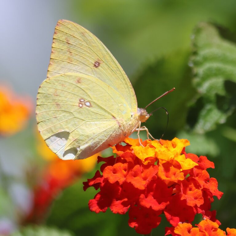 Nearer the coast and often in parks or botanic gardens, other desirable species are regularly encountered; for example Monarch Danaus plexippus, African Grass Blue Zizeeria knysna, American Painted Lady Vanessa virginiensis, and the exotic African Migrant Catopsilia florella. At practically every site, we will enjoy the company of the delightful Canary Speckled Wood Pararge xiphioides, whilst Long-tailed Blue Lampides boeticus, Geranium Bronze Cacyreus marshalli, and Bath White Pontia daplidice should also make an appearance.