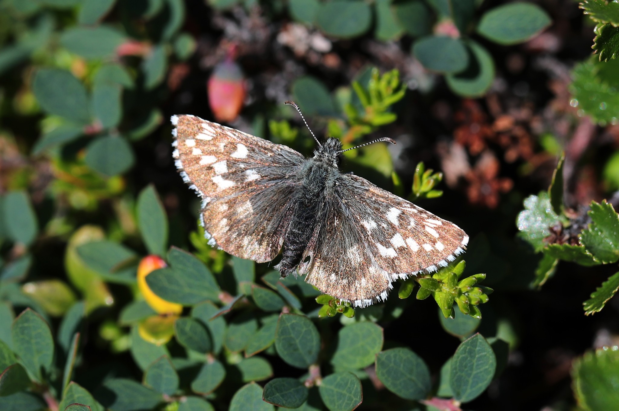Speaking of skippers, we may also encounter the catena species of Silver-spotted Skipper; being this far north, our week ranging between the 69°N and 70°N lines of latitude, we find a number of otherwise familiar species in novel subspecific form – including the ossiana subspecies of Bog Fritillary, and polaris subspecies of Small Copper.