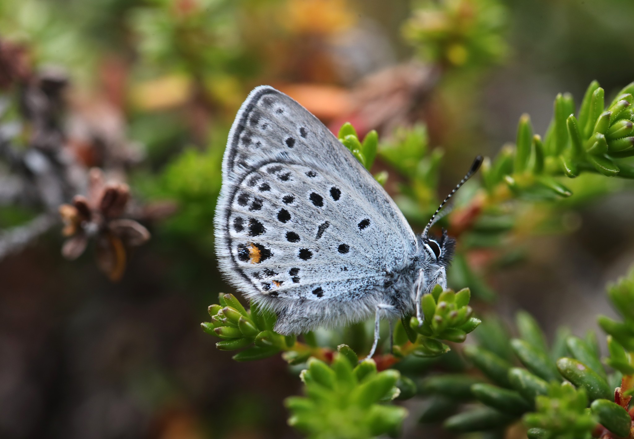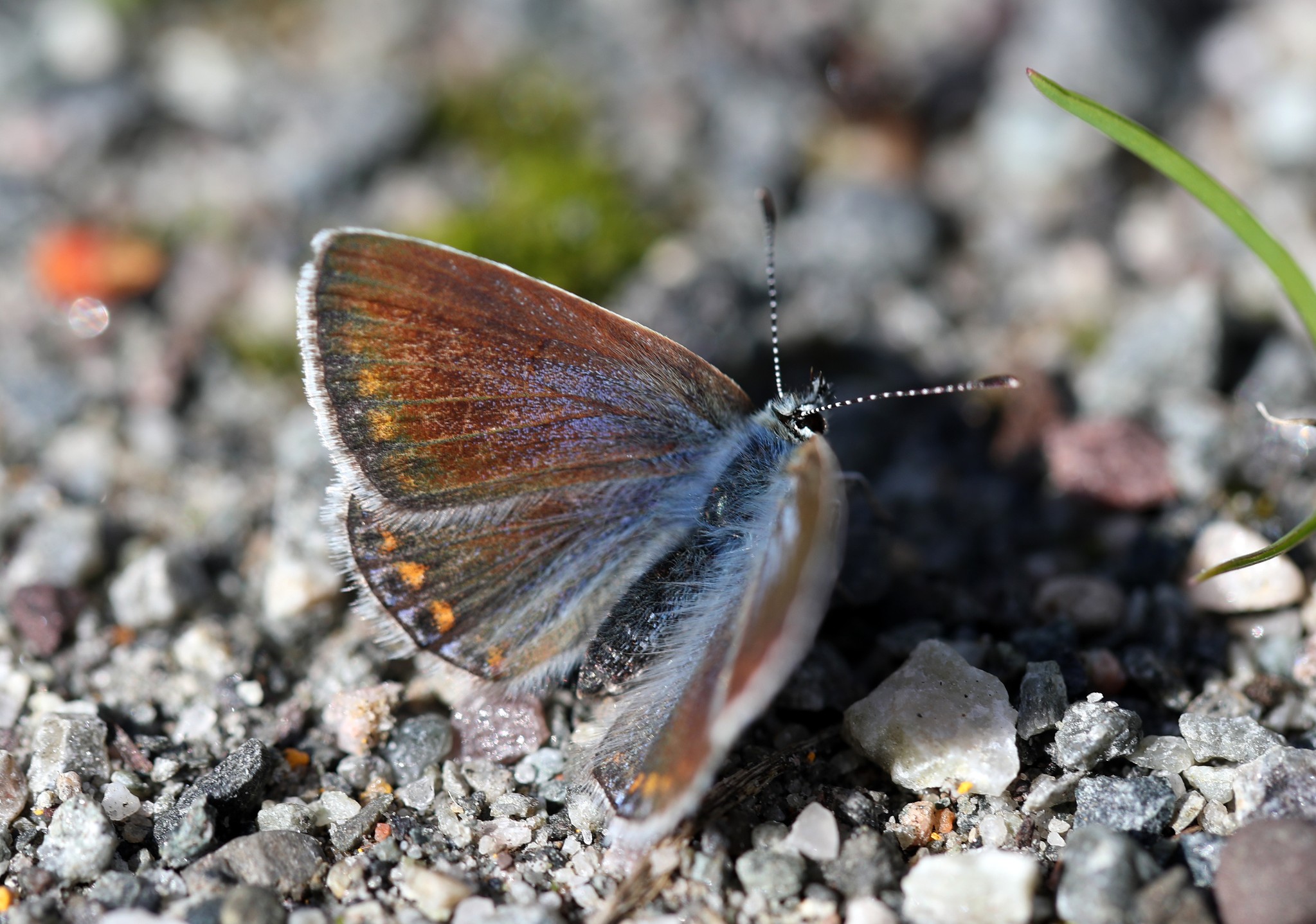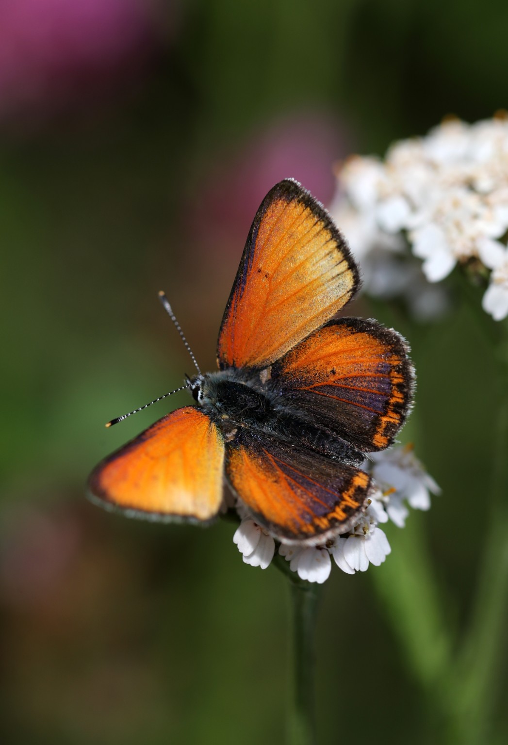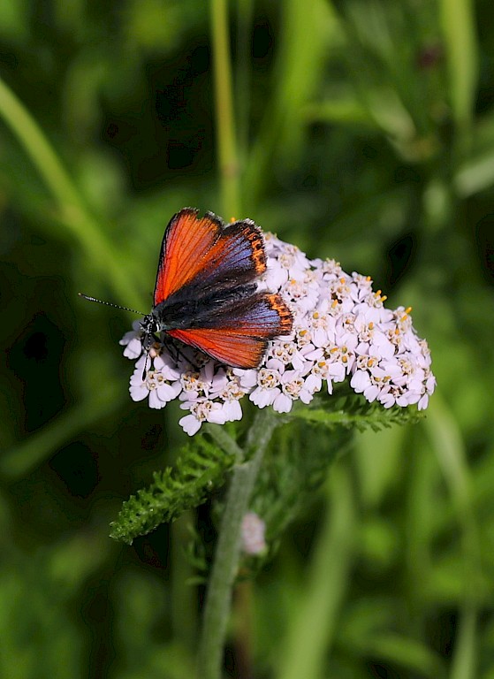 Small Copper will be greatly outnumbered by subspecies stiberi Purple-edged Copper, and these are a particular delight – like all the European coppers that sport purple on their wings, the further north one goes, the more extensive the violet colouration becomes. Here in the north of Norway, their hindwings blaze with intense colour.