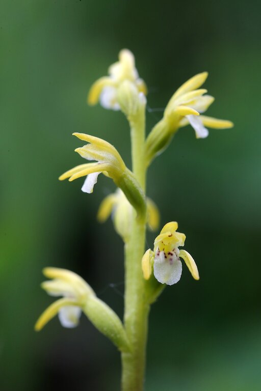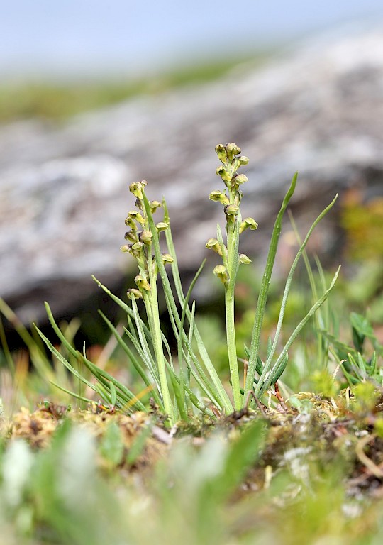 Colourful interest will not be restricted to the butterflies – it will be impossible to ignore the vast array of alpine flowers that bloom at this time of year, including a multitude of highly attractive and range restricted species. The intense blue starbursts of Snow Gentian compete underfoot with the snowy white blossoms of carnivorous Alpine Butterwort, the dusky pinks of Glacier Buttercup, and the rich yellow of Vanilla-scented Bog Orchid Pseudorchis straminea. While we won’t see a huge variety of orchids this far north, they make up for that in both abundance (Common Spotted Orchid fill roadside verges for mile upon mile in their countless thousands) and their exclusivity – we’ll find Alpine Dwarf Orchid Chamorchis alpina growing right alongside Vanilla-scented Bog and Frog Orchids.