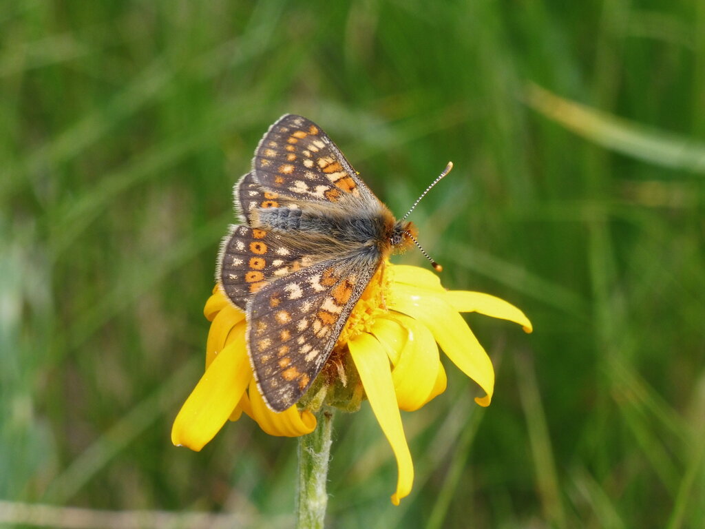 The list of other alpine specialities we’ll look for are a long and comprehensive roll call of European montane butterflies. These include Clouded Apollo Parnassius mnemosyne and Small Apollo P. phoebus; Peak White Pontia callidice and Mountain Green-veined White Pieris bryonae; and Moorland Clouded Yellow Colias palaeno and Mountain Clouded Yellow C. phicomone. We hope to encounter the alpine eurydame subspecies of Purple-edged Copper Lycaena hippothoe and Sooty Copper L. tityrus ssp subalpina, while the blues may include Large Blue Phengaris arion and Mountain Alcon Blue P. rebeli, Geranium Argus Eumedonia eumedon, Alpine Blue Agriades orbitulus and Cranberry Blue A. optilete, Damon Blue Polyommatus damon and Eros Blue P. eros, and Alpine Zephyr Blue Kretania trappi.