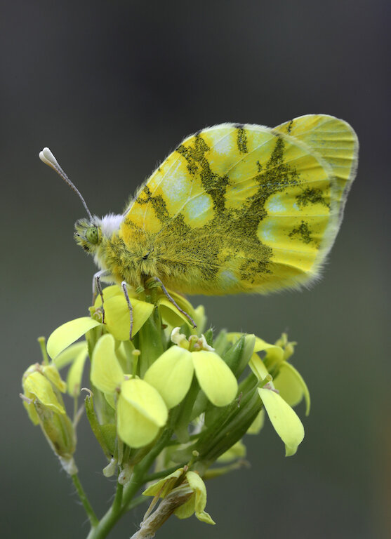 It’ll be hard to tear ourselves away, but we’ve somewhere just as lovely in which to base ourselves for the second half of the week – a boutique guesthouse in the pretty hilltop village of Berdún, nestling at the foot of the Pyrenees. From here, we will explore the deep valleys that flank the mountains, searching for flaming, bright Spanish Fritillary Euphydryas desfontainii and, at lower elevations, ruderal fields and their hilly margins in which we anticipate finding two simply sensational Pierids – Spanish Greenish Black-tip Euchloe bazae ssp iberae, and Sooty Orange Tip Zegris eupheme. The former is restricted to just a couple of discrete areas of Spain, and found nowhere else on Earth; while the latter is notoriously hard to see without expert guidance. Happily for our guests, we know where both should be…